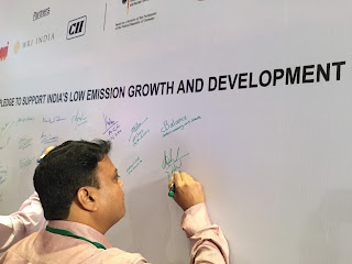 Jamshyd Godrej signing a pledge to support India’s low emission growth and development.