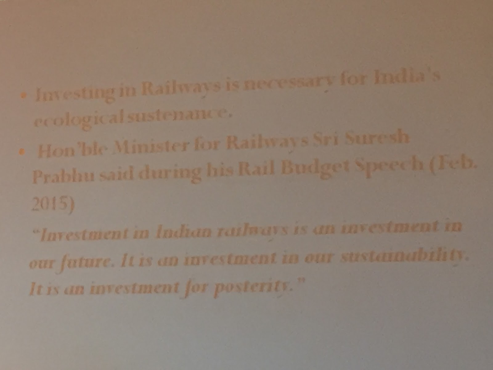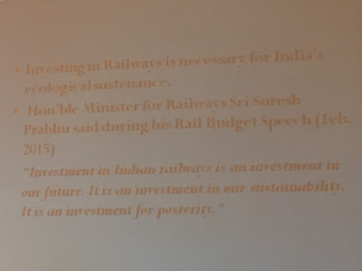 In case you can’t read it clearly, the quote says: “Investment in Indian railways is an investment in our future. It is an investment in our sustainability. It is an investment for posterity (all future generations of people).”